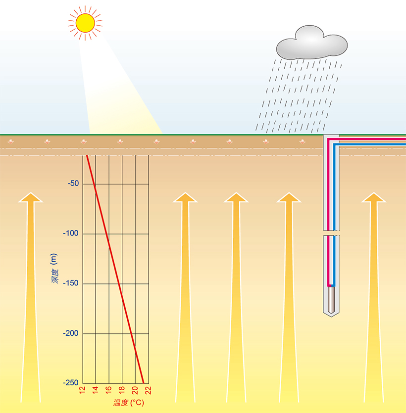 深層地熱換熱盤管采用垂直埋管的方式,深度在100-120米之間,有些埋管深度可達200米以上。